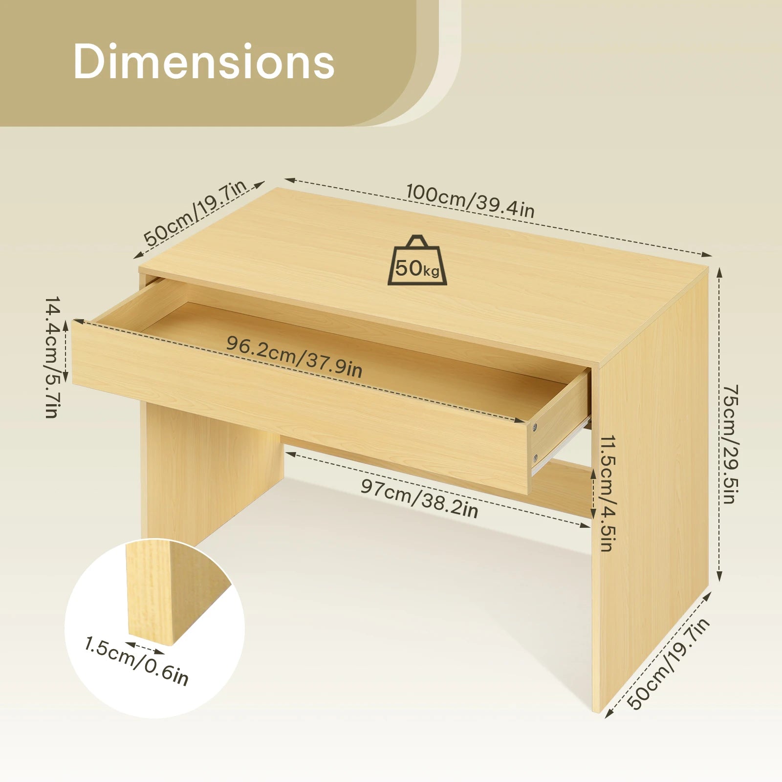 Gaming-Schreibtisch Eiche 100×50 cm mit Schublade – kompakter PC-Tisch fürs Home Office